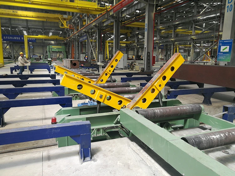 У кожному наборі наведено два ПК рухомого 180 ° гідравлічного променя, що використовуються в основному для надмірних поворотів після зварювання з одного боку. Працюючи, підніміть заготовку подалі від роликового столу або стійки для заготовки, а редуктор приводить два перекидання кронштейнів, щоб синхронно рухатися, щоб перемістити заготовку в бік роликового столу або стійки для заготовки. Потім два гідравлічні циліндри керують двома L-подібними руками, щоб синхронно обертатися. Після того, як заготовка буде скасована, вона переміщується до середини роликового столу або стійки для заготовки, а потім заготовка транспортується до наступного процесу або звареного.