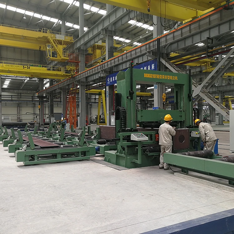 По-перше, підніміть "U-подібну" пляму, зварену до перевозного роликового столу складової машини або транспортуйте його на цю станцію з попередньої "U-подібної" станції складання. Потім підніміть верхню пластину кришки на "U-подібну" відповідно до вимог до креслення, і використовуйте її як пристрій для натискання на стороні хоста та верхній пристрій для натискання. Натисніть і спотворюйте верхню пластину кришки, щоб завершити збірку всієї заготовки. Збірка сегментів заготовки довжиною досягається рухомим положенням хост -машини. Зібрана заготовка надсилається до наступного процесу транспортуючою роликовою таблицею для подальшої обробки.